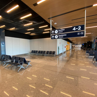 Já na área segura, os portões de embarque são bem sinalizados e com boa quantidade de cadeiras para deixar todos os passageiros confortávelmente sentados enquanto esperam o momento de ir para o avião.